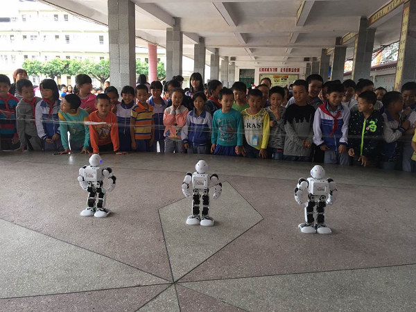 此次活动的科普内容有益智玩具、车载光电展品、机器人,还有别开生面的科技课堂。全校分班次排队依次参观体验科普展品,边观看边动手操作,现场气氛活跃,不时响起掌声、赞叹声。