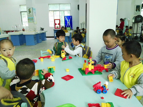 小朋友们首先分班次依次有序地欣赏机器人表演,随后进入科学乐园体验各种展品,有的弹琴观察声驻波,有的玩会下楼梯的弹簧,还有的在公众素质体验馆动手搭建积木。