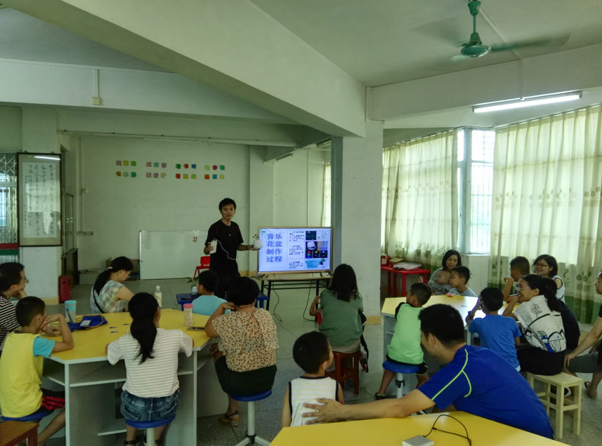 第一期“梦幻音乐花盆”亲子活动赢得了家长和小朋友们的欢迎和肯定,取得了较好的社会反响。随后几天,我馆陆续接到不少家长报名参加活动的电话。为了让更多的小朋友参与活动,学习电子模块知识,我馆在周末连续两天积极组织第二、第三期课程。