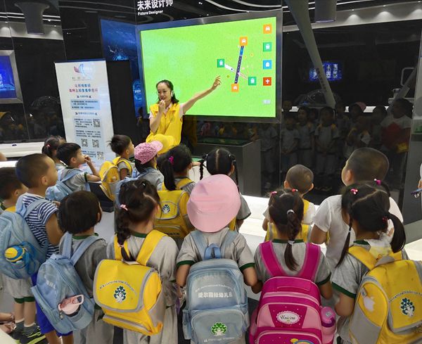 在展厅,面对新奇又好玩的“大玩具”,孩子们既兴奋又好奇,“跳舞的机器人”、“天上来水”、“针幕”、“未来设计师”等互动展品受到了小家伙们热烈欢迎。