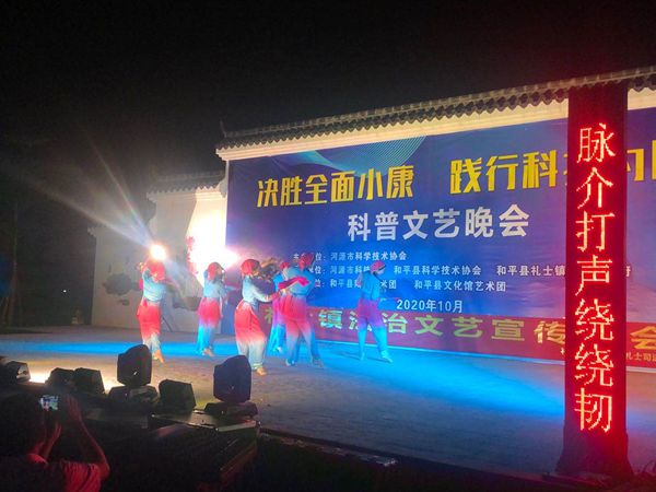 10月15日晚,我馆在和平县礼士镇文化广场承办了以"决胜全面小康,践行科技为民"为主题的科普文艺晚会,吸引了近千名村民前来观看。
