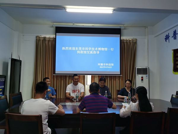 4月22日,东莞市科学技术博物馆副馆长卫红一行四人到我馆交流学习,受到我馆馆长蓝红波热情接待。