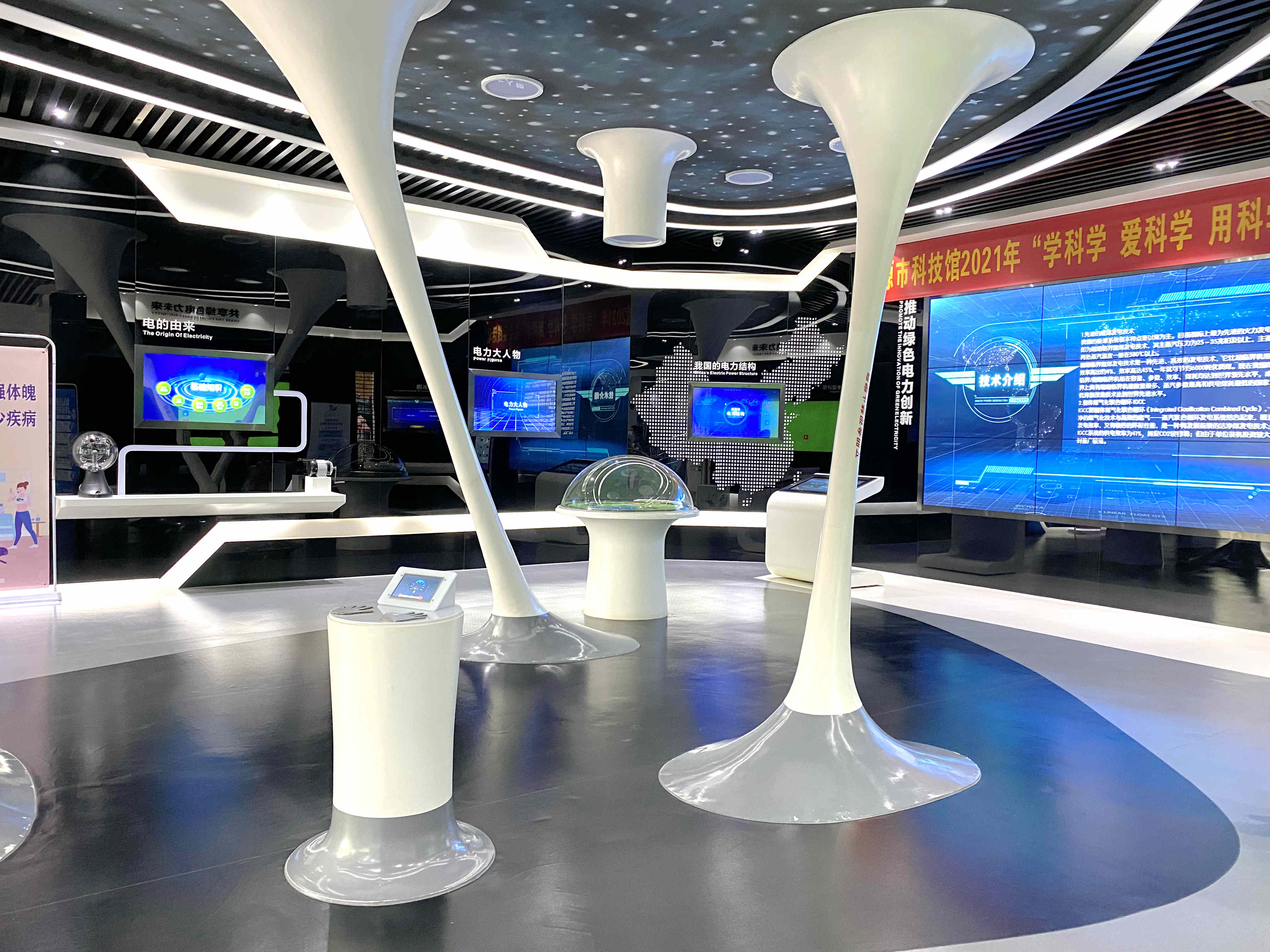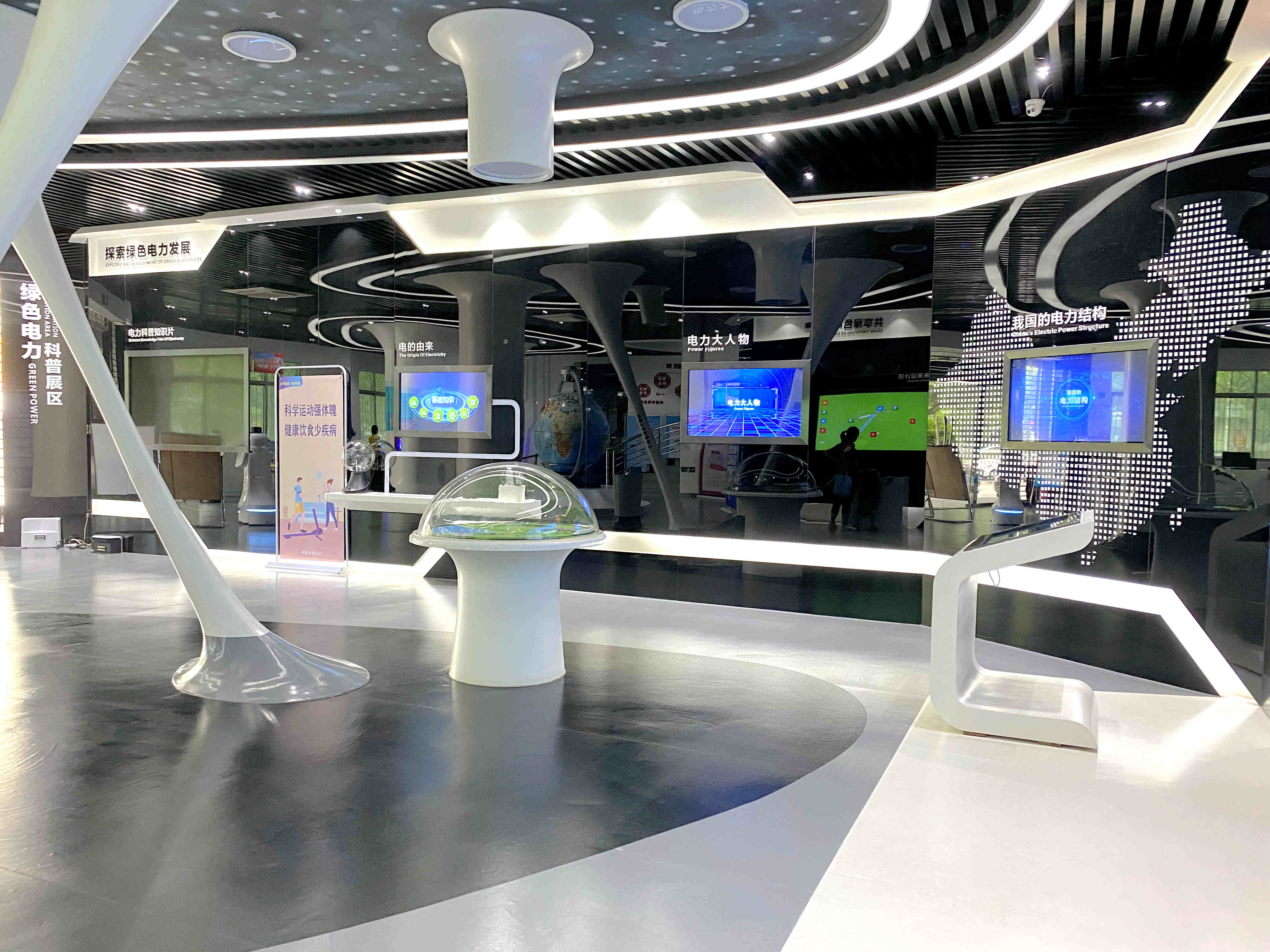展区分为三大区域,分分别是“探索绿色电力发展”、“推动绿色电力创新”和“共享绿色电力未来”。涵盖的展品有:电的由来、电力大人物、我国的电力结构、绿电百事通、未来设计师、人体电池等展项。