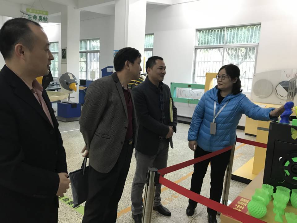 在科技辅导员的带领下,调研组参观了常设展厅,体验了“3D打印”、“滚出直线”等科普展品。参观过程中,辛小龙同志汇报了我馆建设运营以及科普教育活动开展的相关情况。