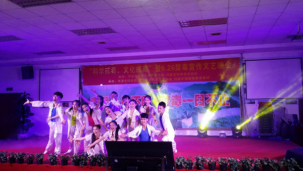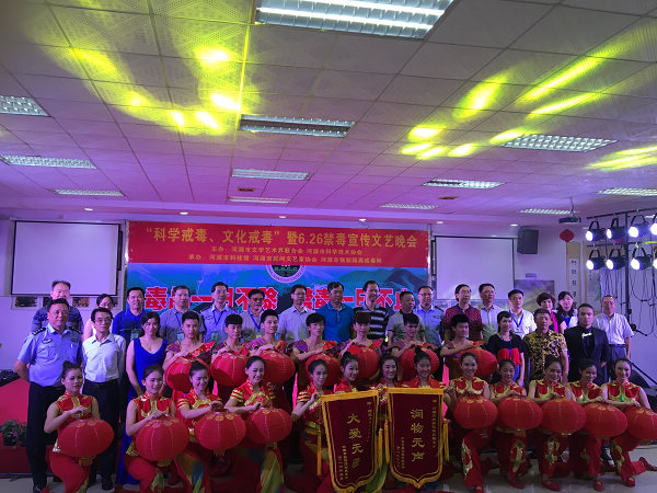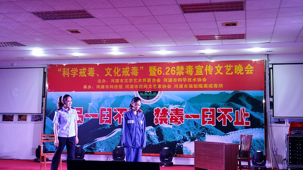 为深入贯彻落实党的十八大精神,推进社会主义核心价值观宣传工作,进一步加强禁毒宣传教育,丰富在所戒毒学员的精神生活,在第29个国际禁毒日来临之际,6月23日晚,我馆与河源市民间文艺家协会、河源市强制隔离戒毒所共同承办了,由河源市文学艺术界联合会、河源市科学技术协会主办的,在河源市强制隔离戒毒所举办的“科学戒毒、文化戒毒”“6.26”文艺联欢晚会。