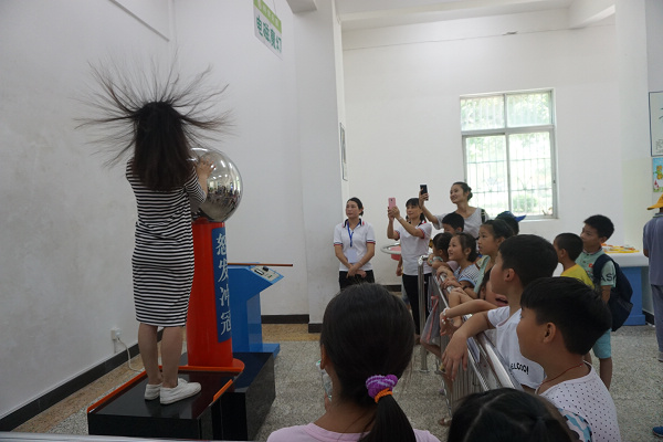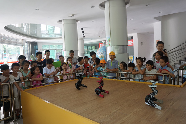 学员们跟随着科普讲解员,首先观看了机器人表演,整齐可爱的机器人舞蹈赢得学员们的满堂喝彩。学员们随后参观了科学乐园,学员们被天上来水、下楼梯的弹簧、怒发冲冠等科普展品深深吸引,并在与讲解员一问一答的互动中体会到科学的魅力,激发了探究科学兴趣。