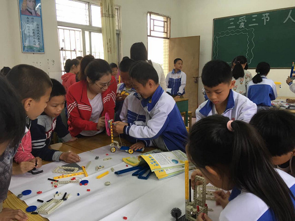 此次活动的科普内容有益智玩具、车载光电展品、机器人,还有别开生面的科技课堂。全校分班次排队依次参观体验科普展品,边观看边动手操作,现场气氛活跃,不时响起掌声、赞叹声。