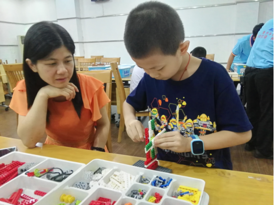 本次课程的主题是制作智能百变机器人“智能风扇”。从简单的橡筋传送、积木搭建,再到电机链接及电脑编程,同学们亲自动手一步一步操作。组装过程中,有成功的也有失败的,但是失败的同学并不气馁,而是检查失败的原因,主动思考,继续研究,直到问题解决并制作成功。