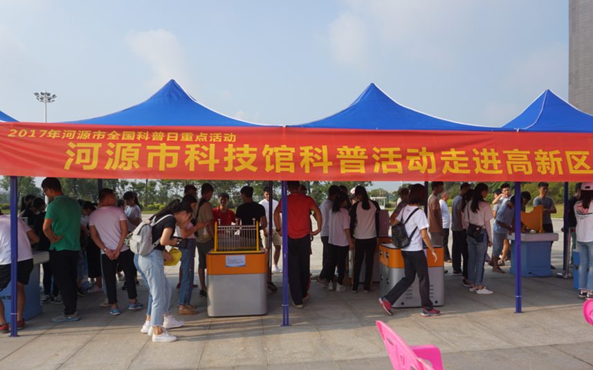 9月19日,2017年全国科普日期间,我馆载满揭示科学奥秘的科普展品走进市高新区,让高新区200多位市民乐享科普大餐。