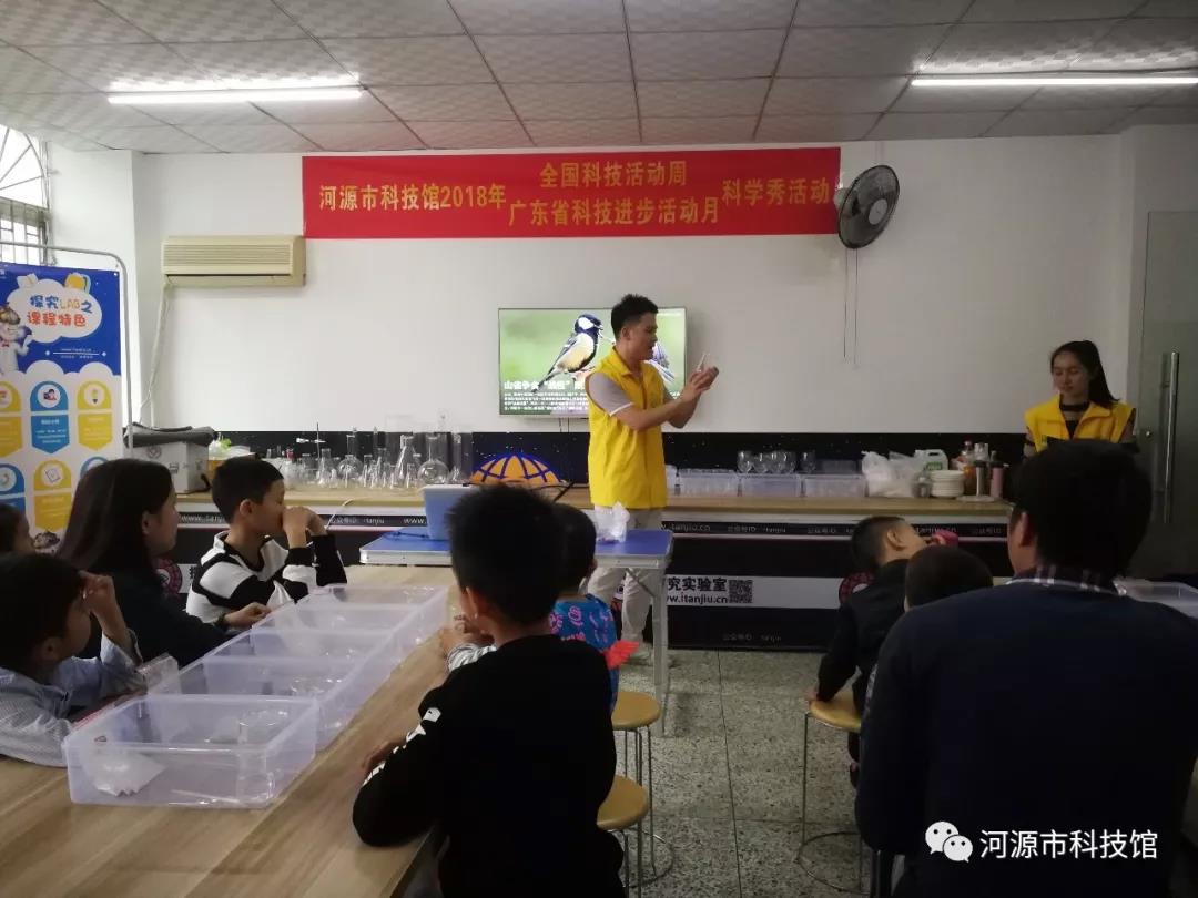 11月18日下午,我馆举办的制作“牙齿清洁剂”科学秀亲子活动在三楼实验室举办。活动吸引了12组家庭参与。