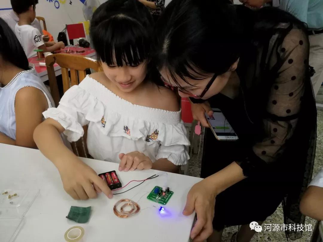 活动首先介绍了“神奇无线输电”的科学原理,并学习了电子模块搭建的电路知识。随后,家长陪同孩子一起动手制作,组装属于自己的无线输电。