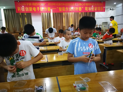 7月7日上午,“小小科学家·我的中国梦”2019年科技创新电子制作赛—“智能作业计时器”现场组装项目比赛在我馆举办。