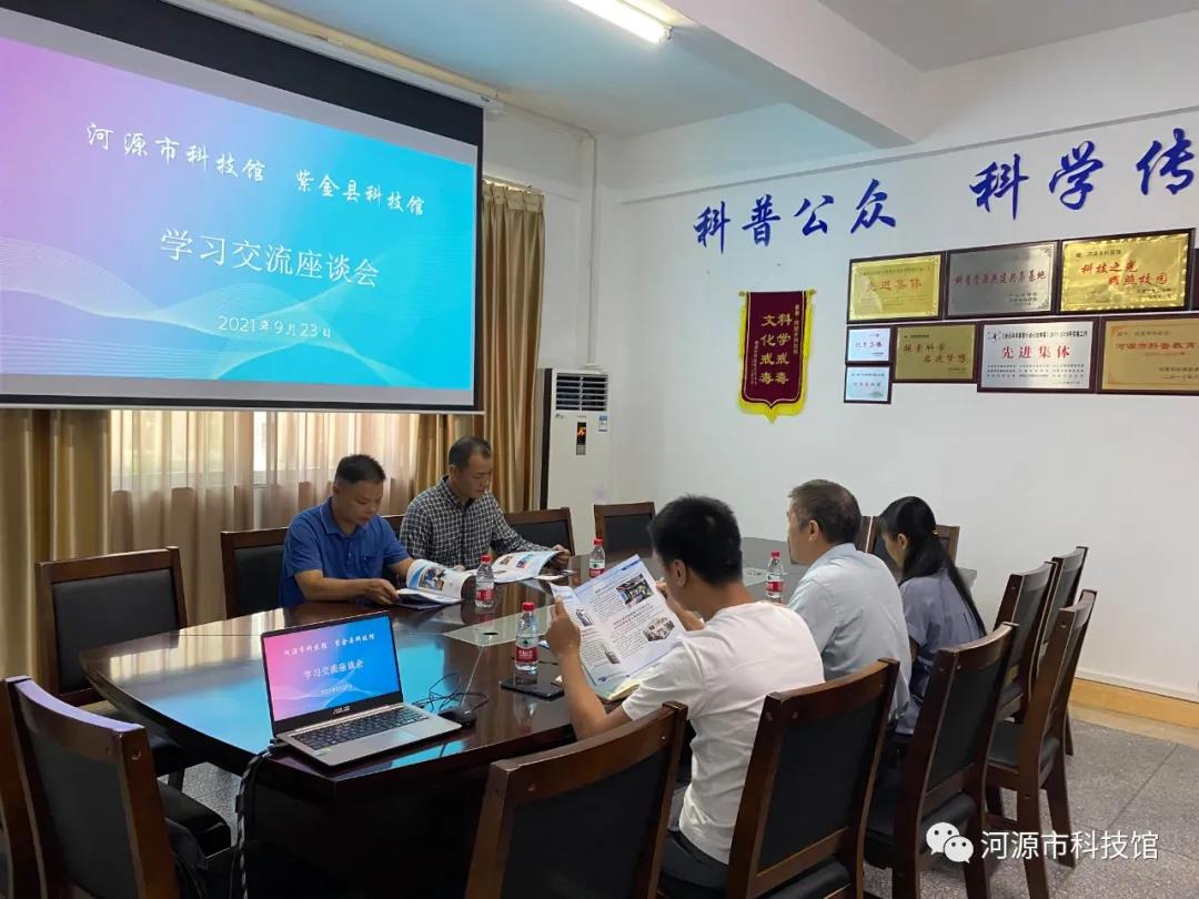 座谈会上,蓝红波介绍了我馆科普活动的开展以及近年来免费开放运营情况,并就紫金县科技馆提出的问题做了详细介绍和解答。交流结束后,温潮海表示此行收获颇丰,对紫金县科技馆管理运行有积极的借鉴作用,希望双方能够进一步保持沟通,努力推动我市科技馆的建设与发展。