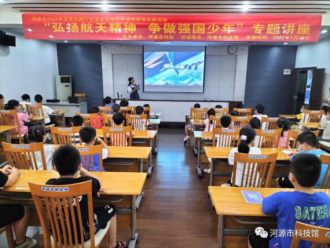7月28日,我馆在报告厅开展“弘扬航天精神 争做强国少年”专题讲座。讲座吸引了36名学生参与。